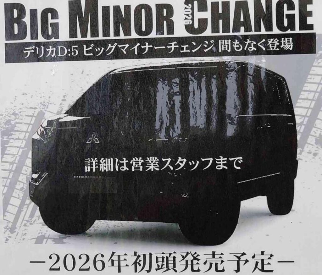 透過預告圖以及先前捕捉到的測試車,新款 Delica D:5 外型上將有更新,預期會有新式樣的保桿造型,另外前後燈組也有望重新設計,日媒推測該車為 Delica D:5 最終版,預期目前經銷商的選配項目皆會列為標配,同時提供黑化外型,包括輪圈與前格柵都變成黑色。至於車迷關注的 Delica D:6 新一代車型,原本傳出 10 月東京移動展亮相,但隨著原廠預告出爐,顯示仍會先推出新款 Delica D:5,意味著新世代 Delica D:6 可能要到 2027 年才會登場,不過預計今年東京移動展上會進一步揭露新世代車型的資訊。新一代 Delica D:6 推測將採用 CMF 平台打造,進一步提升車身剛性確保駕駛穩定度,並確保乘坐舒適表現,車身尺碼將更長更寬,預期來到車長 4,800mm、車寬 1,800mm 的水準,實現更為寬敞的車室空間。外型方面,日媒認為會以先前發表的 D:X Concept 概念車元素為基礎打造,捨棄原先招牌的 Dynamic Shield 設計語彙,透過貫穿式樣的飾板整合細長日行燈,下方則是形狀偏方正的頭燈並與前輪拱防刮材質連成一體,展現更多新意。車室鋪陳也會迎來科技化更新,包括導入全數位儀錶板,擁有更為清晰豐富的資訊顯示,同時導入更大尺寸的觸控螢幕,支援 Apple CarPlay 與 Android Auto 無線連接,整體用料升級以提供更舒適的乘坐表現。