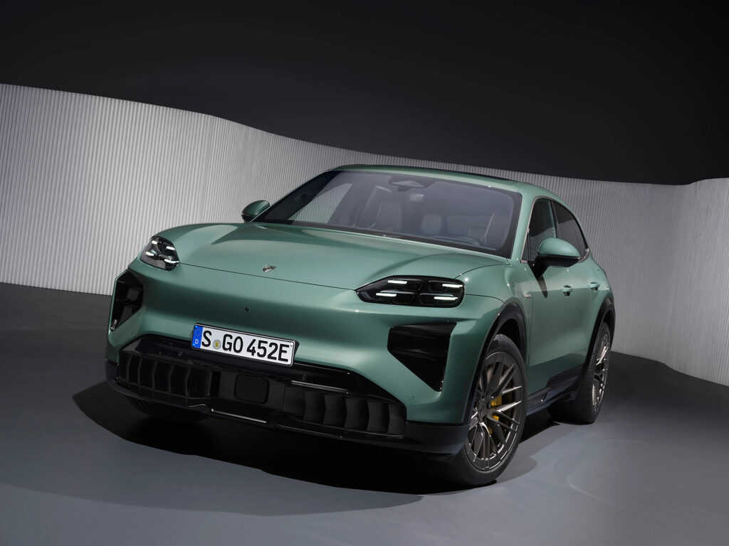 Cayenne Electric保留保時捷經典比例,同時以「Modern Evolution」語彙重新詮釋。車頭採用纖細LED矩陣頭燈(含四點日行燈)與低矮引擎蓋,風阻係數僅0.25。主動進氣導流板與氣簾優化氣流,車側無框車門與立體側裙,搭配飛越線Flyline與專屬輪拱飾條,勾勒低重心姿態。車尾貫穿式3D燈條內嵌自發光PORSCHE字樣,Turbo Electric獨享Turbonite渦輪黑色飾條(徽飾、窗框、21-22英寸輪圈)。主動空力套件(PAA)包含車頂擾流板與Turbo專屬後部aeroblades翼片,高速時增加下壓力並提升續航。越野套件(選配)提供更佳接近角。Cayenne Electric首度搭載Porsche Driver Experience全數位座艙,三塊OLED曲面螢幕(14.25英寸儀錶+14.9英寸中控+選配14.9英寸副駕螢幕)構成保時捷史上最大顯示面積。儀錶支援AR抬頭顯示(87英寸虛擬影像),中控整合Porsche Digital Interaction與App Centre,支援第三方串流與遊戲。全新情境模式(Mood Modes)一鍵切換座椅、燈光、空調與音效;全景天窗採用Variable Light Control液晶薄膜,可瞬間切換透明/霧化。電熱套件加熱扶手與門板,氛圍燈含充電動畫。排檔桿移至方向盤右後方,中央保留空調實體旋鈕與觸控音量。軸距加長至3023毫米(+130 mm),後排膝部空間大幅提升約12厘米,頭部空間約9厘米(175厘米成人)。後座支援電動前後滑移與椅背角度調整,行李廂781-1588升+前90升frunk,平整底板可容四組高爾夫球袋。拖曳能力3.5噸(需選配拖車勾),車內置物包括中控大型冷熱杯架與後座平板架。車重2650公斤,轉向半徑6.1米(選配後軸轉向降至5.7米)。Cayenne Electric採用前後雙馬達+113 kWh電池(雙面冷卻),800V架構支援390-400 kW快充(10-80%不到16分鐘)。入門版408 PS(Launch Control 442 PS),0-100 km/h 4.8秒;Turbo Electric正常857 PS,Launch Control瞬間1156 PS/1500 Nm,0-100 km/h 2.5秒、0-200 km/h 7.4秒,極速260 km/h。後軸馬達採用賽車級直接油冷,Push-to-Pass提供10秒176 PS額外動力。動能回收最高600 kW(Formula E等級),97%煞車純電完成。底盤標配PASM氣壓懸吊,Turbo版搭載Porsche Active Ride主動液壓系統,幾乎完全抵消側傾與俯仰。全系標配Matrix LED頭燈(8萬像素)、夜視系統與InnoDrive智慧巡航(含車道置中與轉向輔助)。360度環景與AR導航提升感知,碳陶煞車(PCCB)為Turbo選配。車身採用高強度鋼與鋁合金,預計Euro NCAP五星。