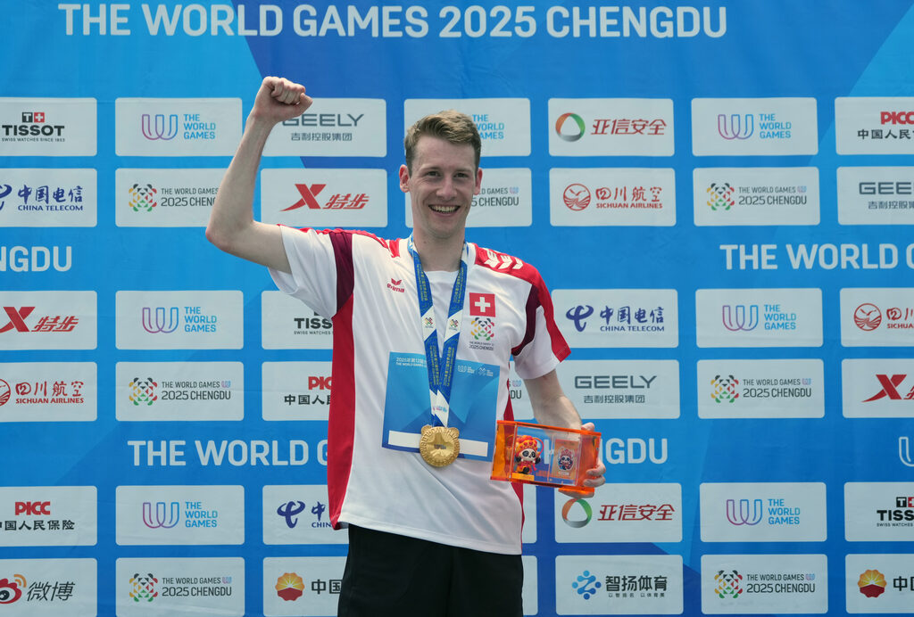【本報訊】第12屆世界運動會8日在成都進行首個金牌日較量,當日共誕生23枚金牌,賽會首金來自徒步定向男子中距離比賽,由瑞士選手獲得。中國小將盧卓靈摘得武術項目女子太極拳-太極劍金牌,這是中國體育代表團在本屆賽事獲得的首枚金牌。